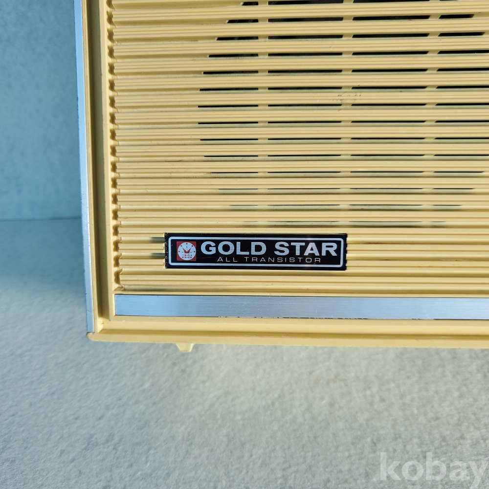 전면을 장식한 정교한 스피커 그릴과 그 위에 당당히 자리 잡은 금성사의 옛 왕관 로고는 당시 산업 디자인의 정수를 보여줍니다. 오른쪽의 튜닝 다이얼을 미세하게 돌리며 밤마다 고국의 뉴스나 구성진 노랫가락에 귀 기울이던 우리네 아버지들의 치열했던 일상과 그 속에 깃든 소박한 낭만이 이 제품 안에 오롯이 스며 있습니다. 단순히 오래된 중고 라디오가 아니라, 한국 전자산업의 뿌리를 증언하며 박물관에 소장되어야 할 수준 높은 '역사적 사료'로서 그 가치가 매우 높습니다.