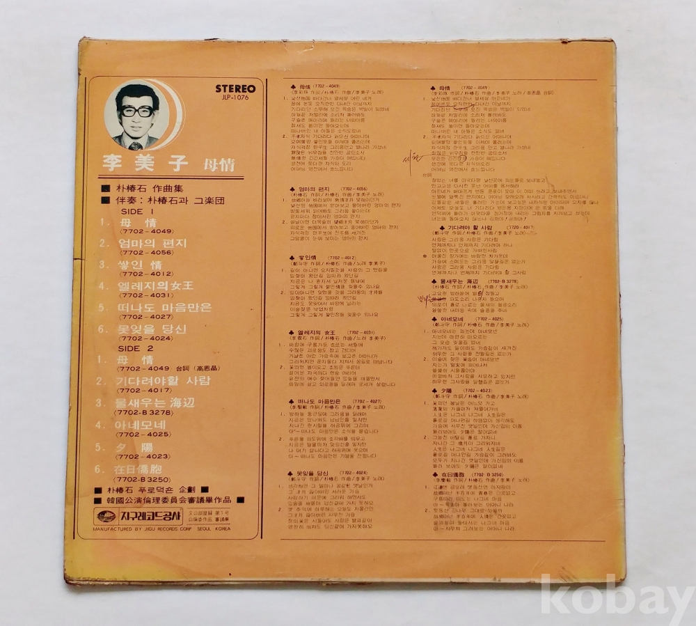 | 자켓상태 | EX : 약간의 마모, 모서리 찢김 존재 | 음반상태 | NM : 개봉했으나 미사용급, 스크래치 없음 | 발매정보 | 알수없음 | 가사지여부 | 무 |