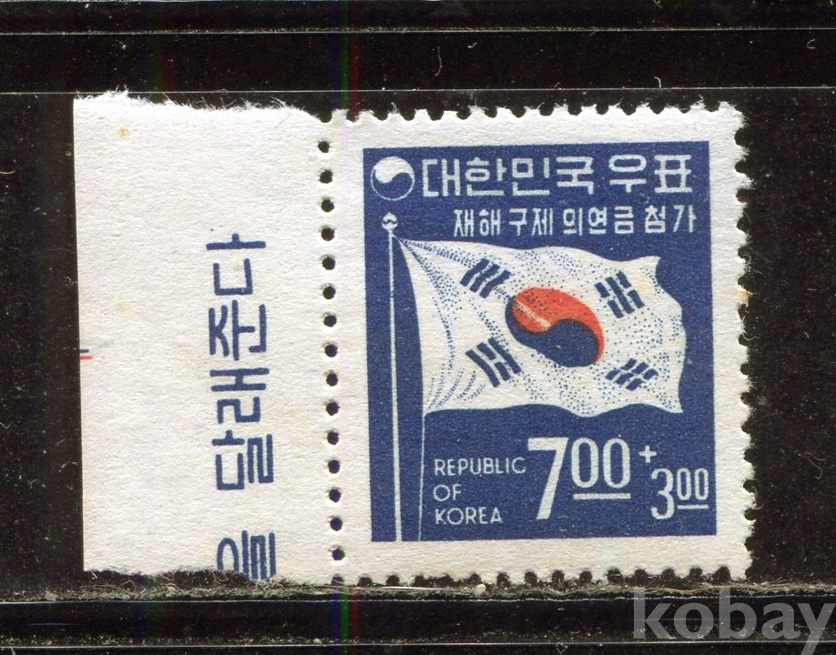 - [자선우표] 1968년 2차 재해구제모금 우표 1종 (MNH : Mint Not Hinged, 우표뒷면 힌지자국없이 깨끗한 상태)