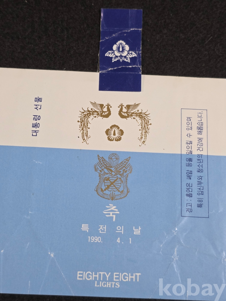 (((근현대사자료/대통령자료)) 1990년 대통령의 상징 무궁화와 봉황금박 특전의날 기념 88라이트 담배포갑지 (대통령선물)