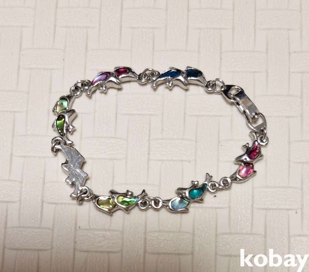 여러가지 색깔의 쉘로 장식한 팔찌입니다.