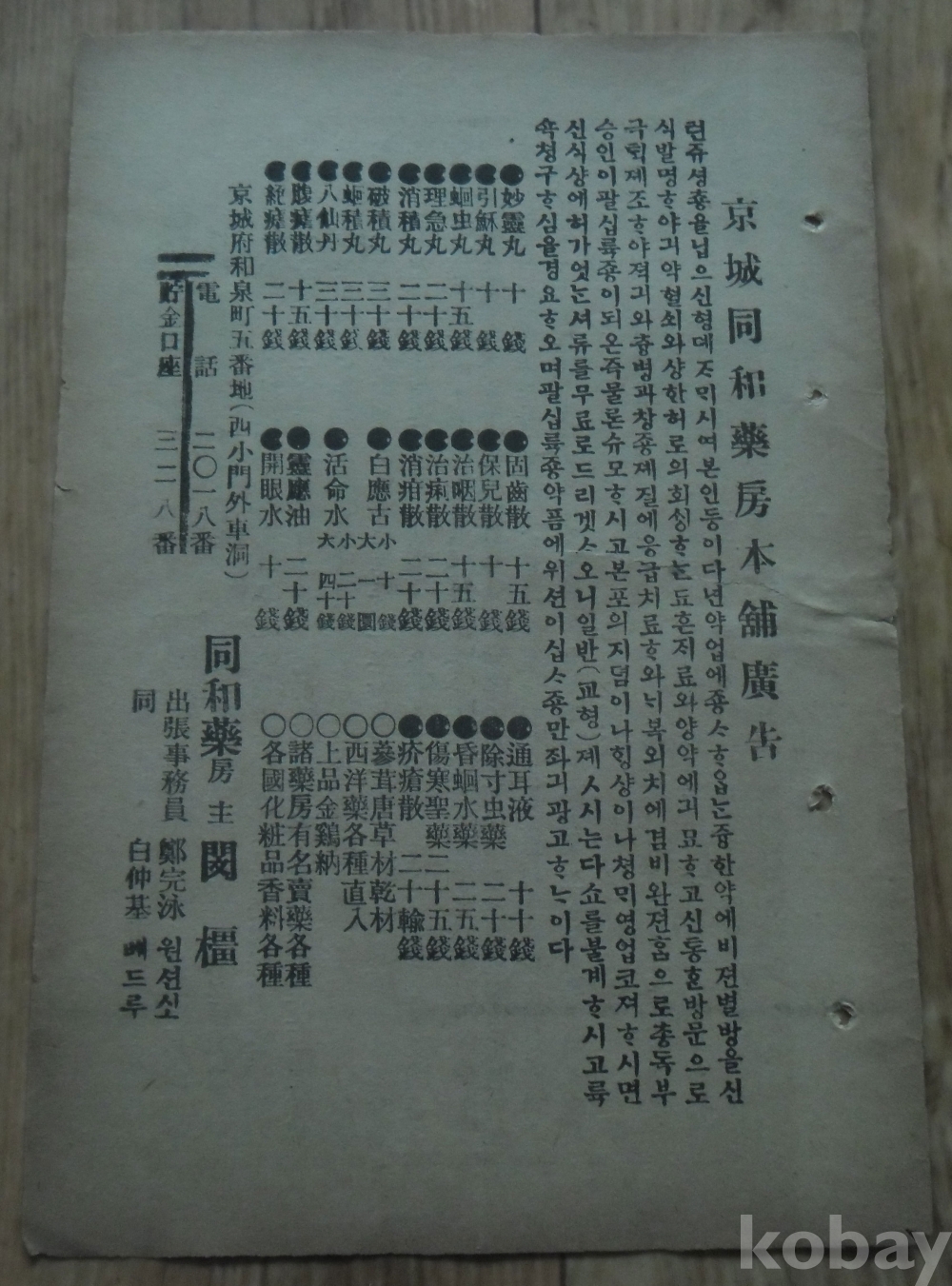 일제감점기 경향잡지속 광고 전단지(경성동화약방)