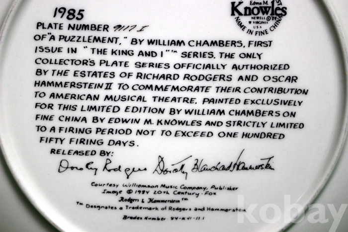 (한정판 명화접시) 왕과 나 (1) : A puzzlement...1985년 / 미국제작