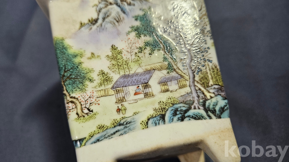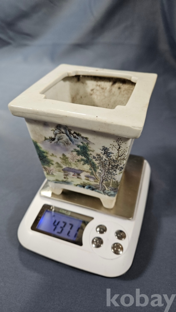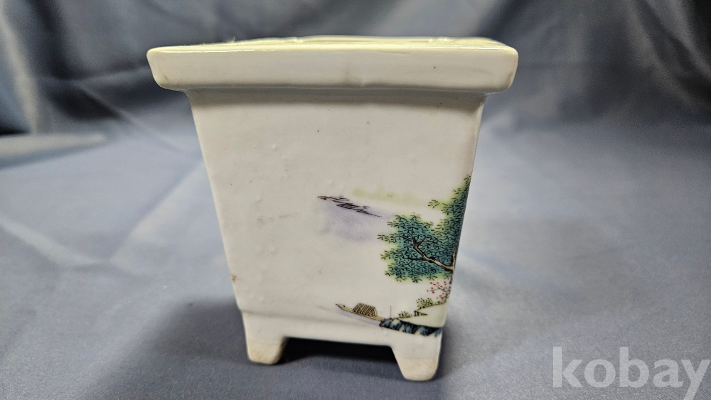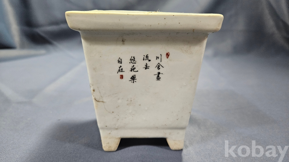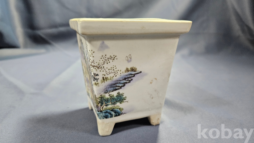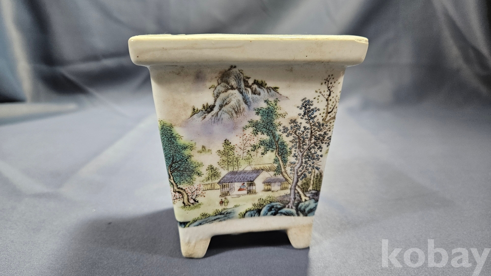 산수화 문양이 들어있는 도자기 화분입니다.