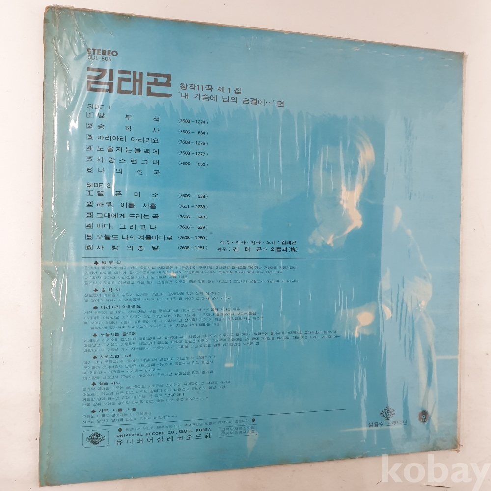 | 자켓상태 | EX : 약간의 마모, 모서리 찢김 존재 | 음반상태 | EX : 재생에 영향 없는 가벼운 기스 존재 | 발매정보 | 알수없음 | 가사지여부 | 무 |