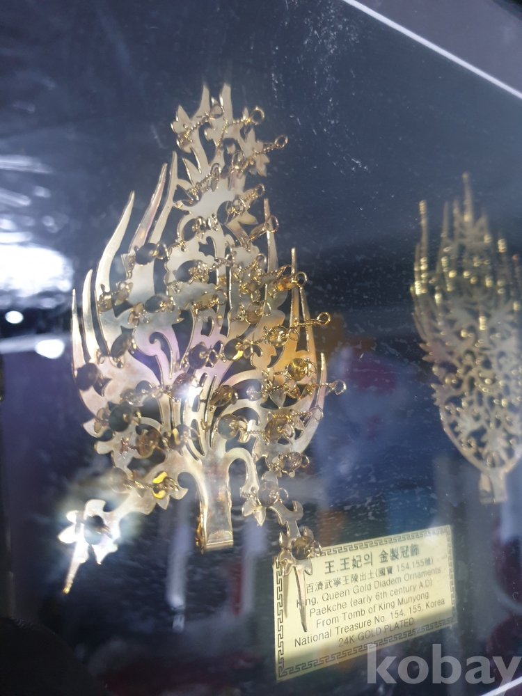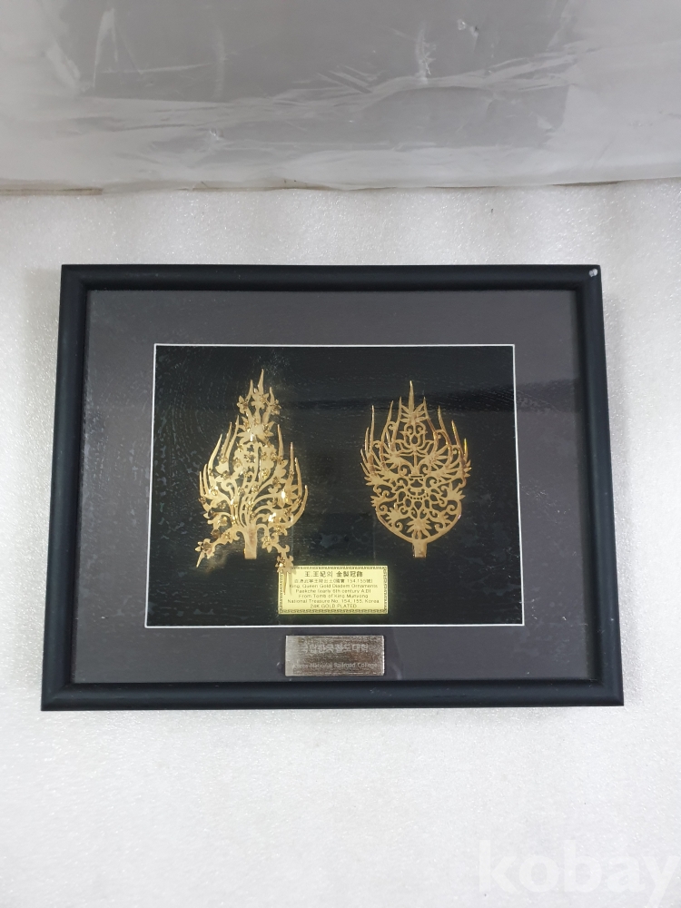 {천원경매}4-1507 왕, 왕비 금제관식 장식품 (재연품액자, 26*21)