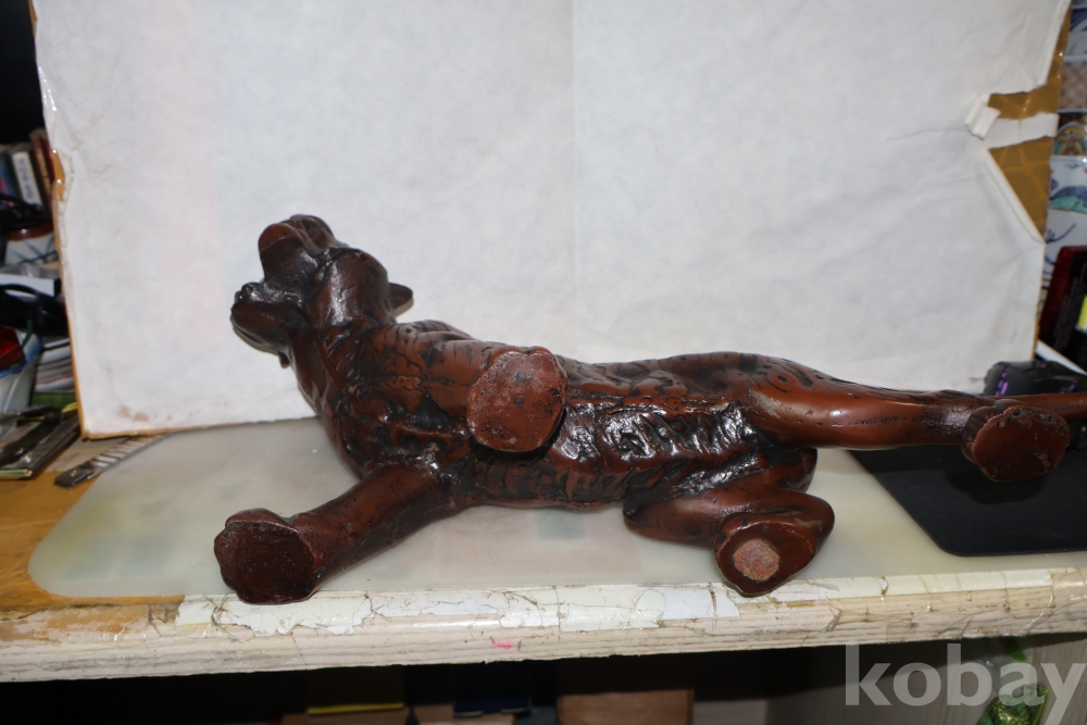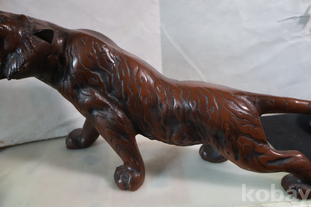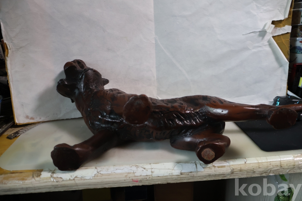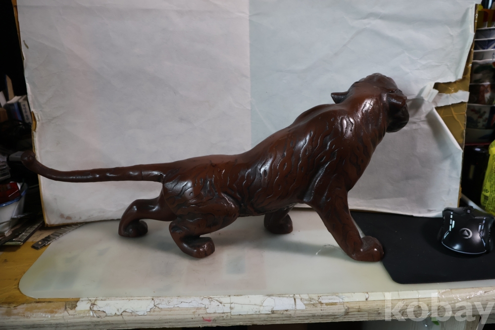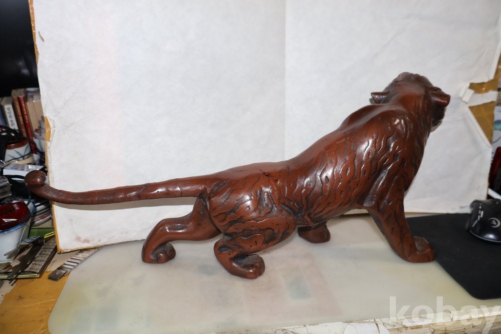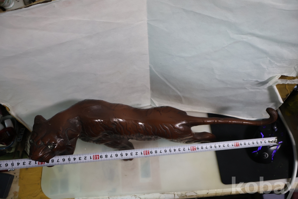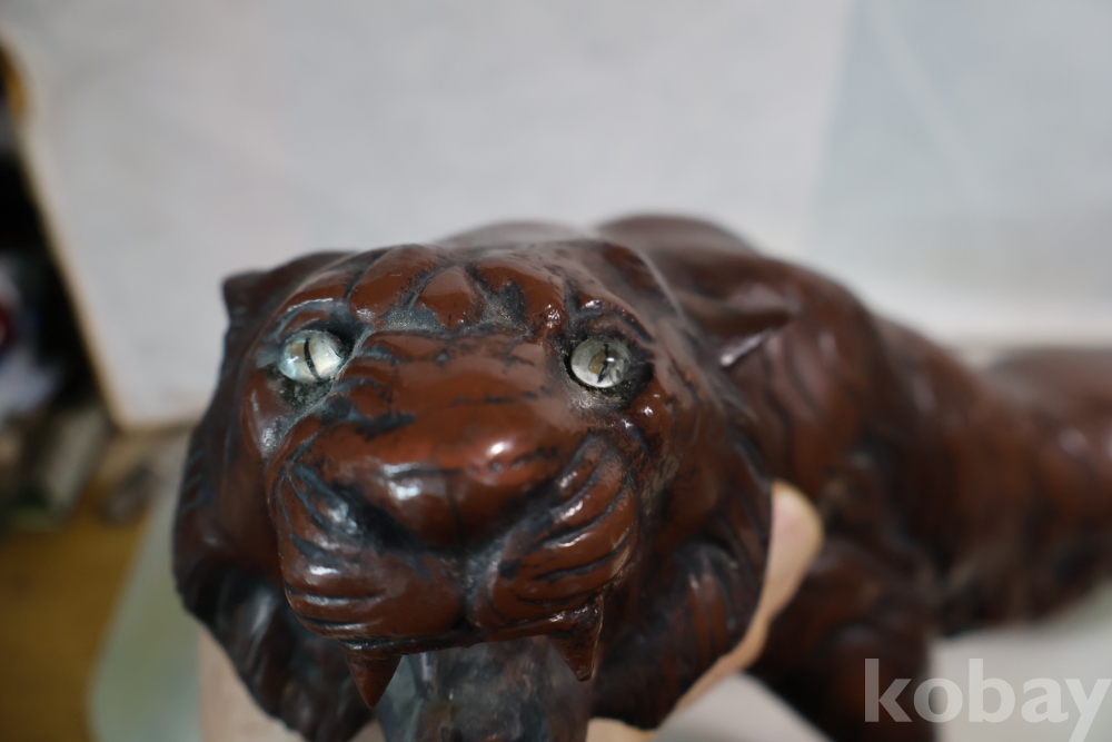 격이 다른 최고 명 임니다 격이 다른 명물 눈빛이 살아 있는 대형 호랑이 조각 상 임니다 표피의 색감 눈알 처리 등등 당대의 명품 이며 구리 철 합금 임니다 가죽의 문양 처리기법이 대단 함니다 두손으로 들어도 힘드는 무개감을 가진 명물