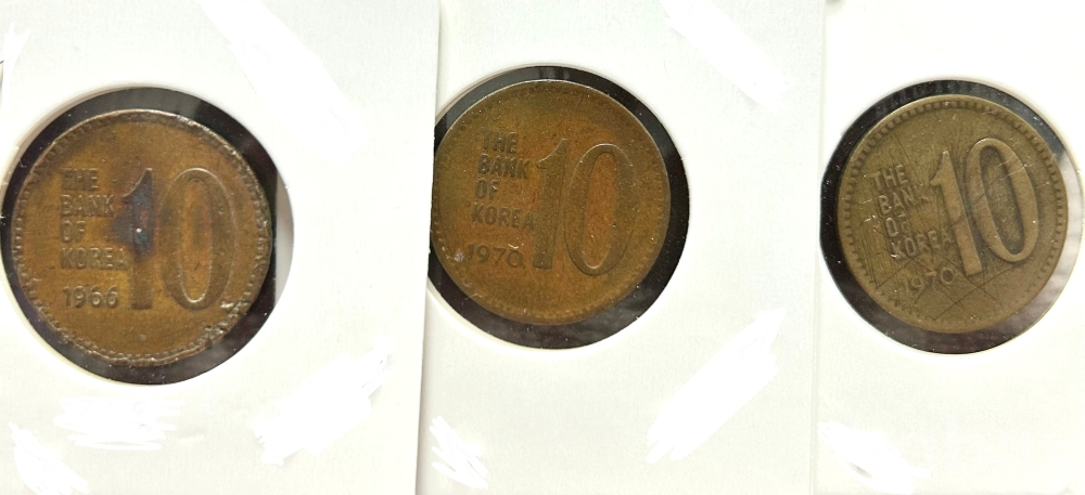 희귀 10원 3종 수집 세트]대한민국 10원 주화 중 가치가 가장 높은 희귀 연도들을 엄선하여 세트로 구성했습니다.