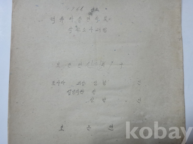 맥류 파종 면적 및 작황조사 대장 (1966년, 보은면)