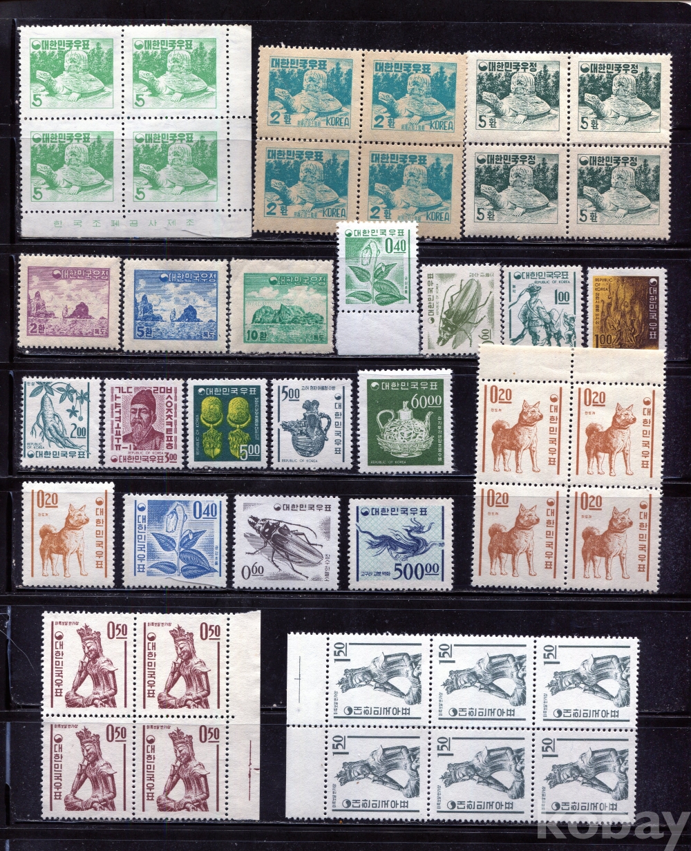 - [보통우표] 1960-70년대 미사용 보통우표 및 블록 모음 (All MNH : Mint Not Hinged : 뒷면 힌지자국없이 깨끗한 상태)