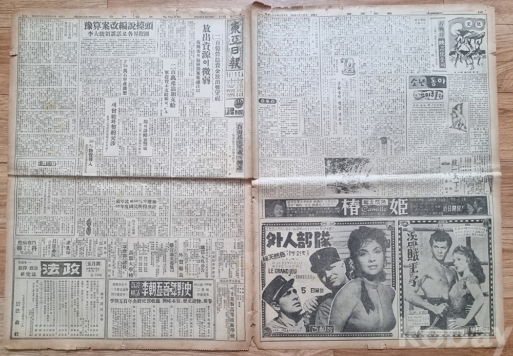 사회/문화 (면별 특징)영화 광고 (2면 하단): 당시 대중문화를 알 수 있는 귀한 자료입니다.