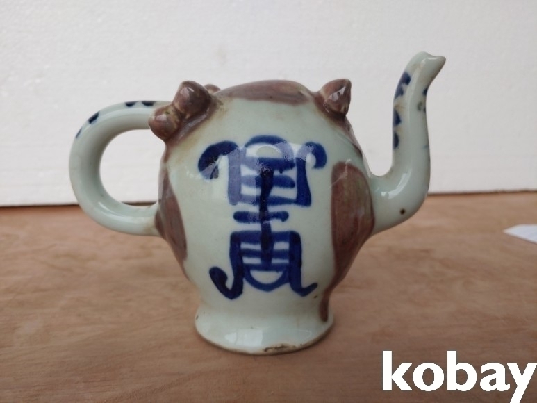 글씨가 있는 주전자형 연적 도자기 입니다.