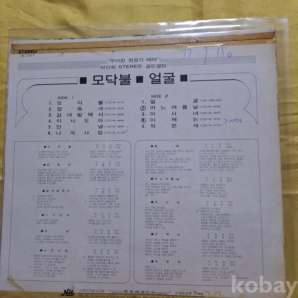 **년도(년식)이 있는 음반이라 작은 팀과, 사진상 엷은 스트릿치는 잘 안보일수 있서니