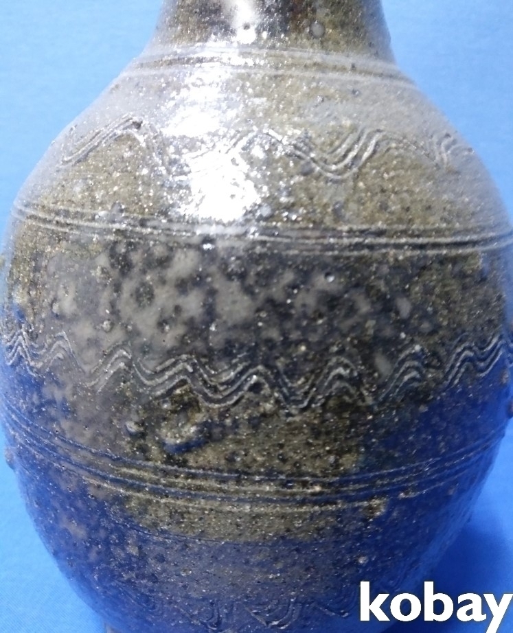 문양이 음각으로 있는 목긴 도자기 입니다.