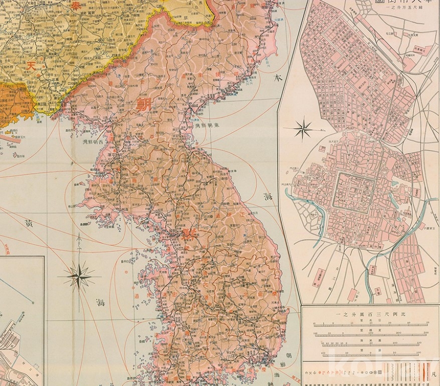 같은 지도인데 채색만 달리 했습니다. 제목부분 글씨도 같은나 진하고 연하고 차이