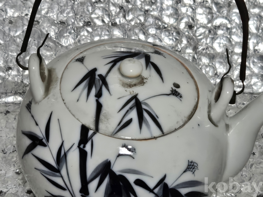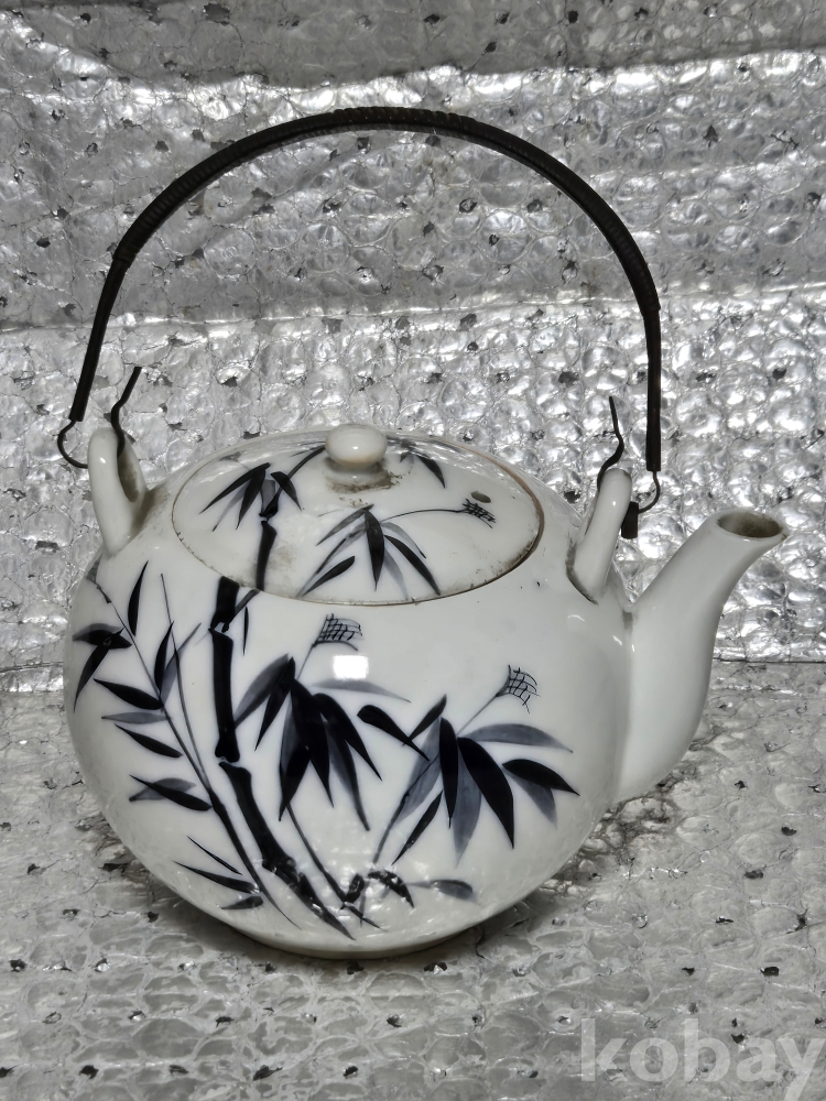 일제강점기 차 도자기 주전자 == 竹문양이 섬세한 문양의 일제강점기 도자기 차주전자