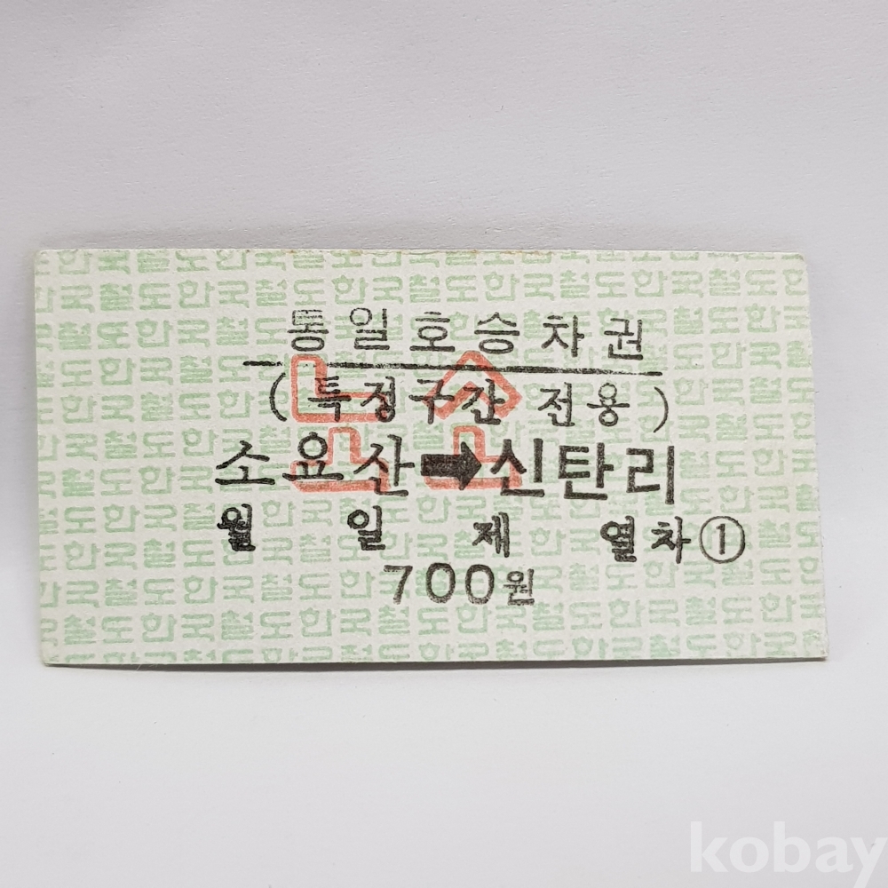 - " 소요산 ▶ 신탄리 " 미사용 통일호 승차권(특정구간전용) 노소 700원