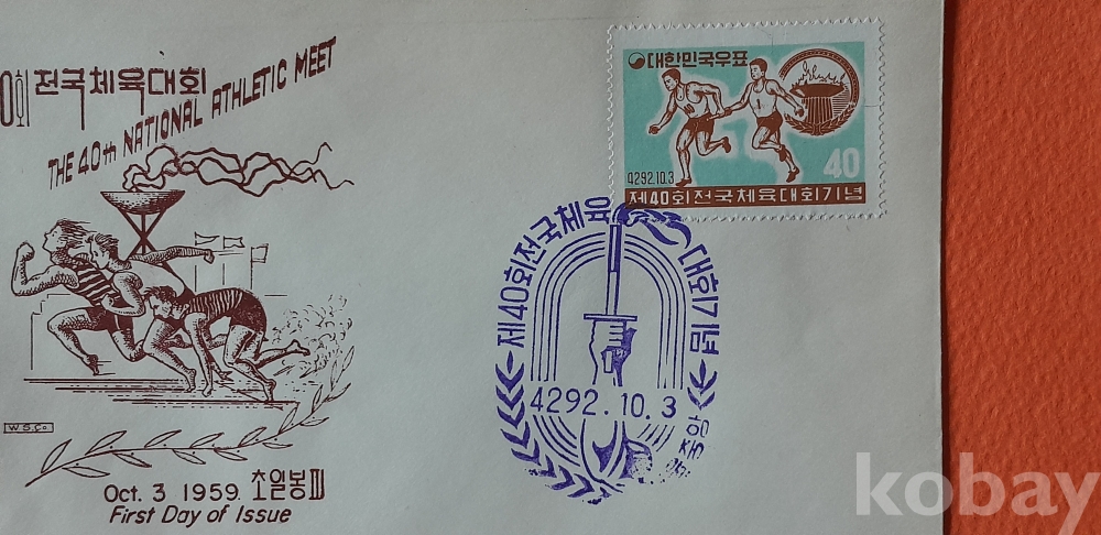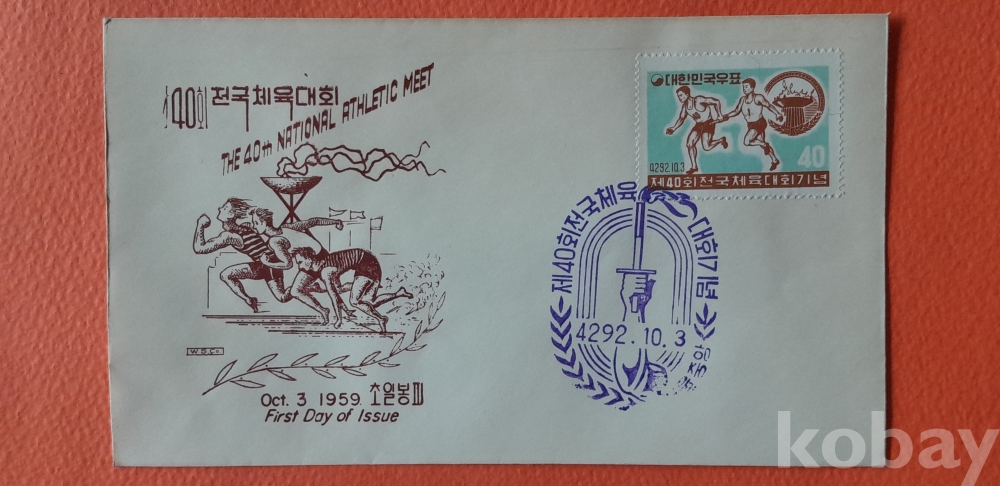 1959년 발행 제40회 전국체전 기념 초일봉피 입니다.