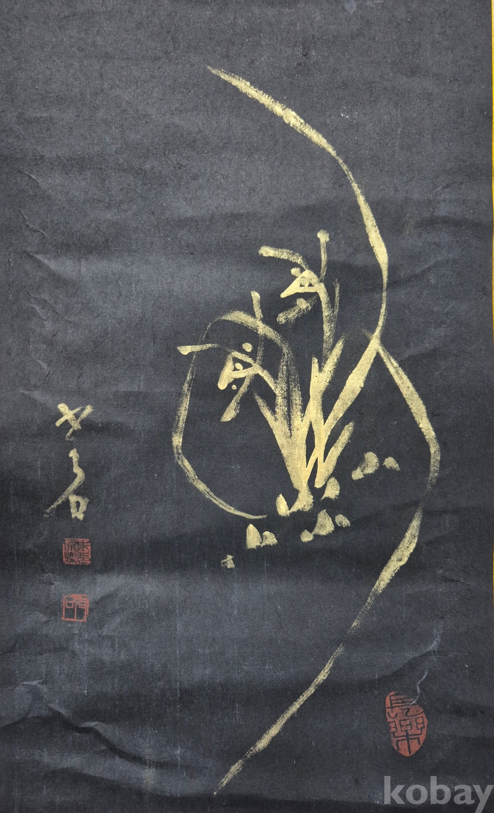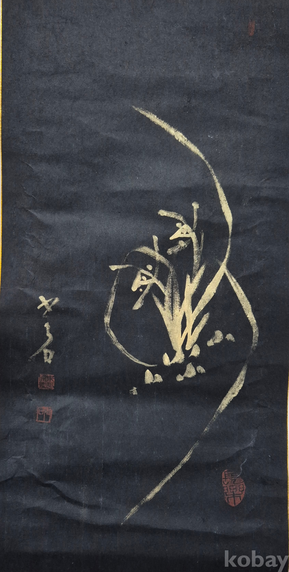 묵란도의 명인 노석'화백님 고급스러운 금색 난 그림'이오니 작품 이미지상 수결 및 낙관'등 두루 잘