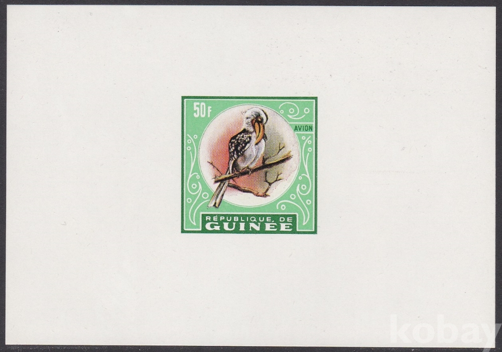 (하늘천) 기니 1962년 50fr, 야생동물, 동물상(動物相), 새, 코뿔새, 미발행 옐로우 그린 디럭스 프루프