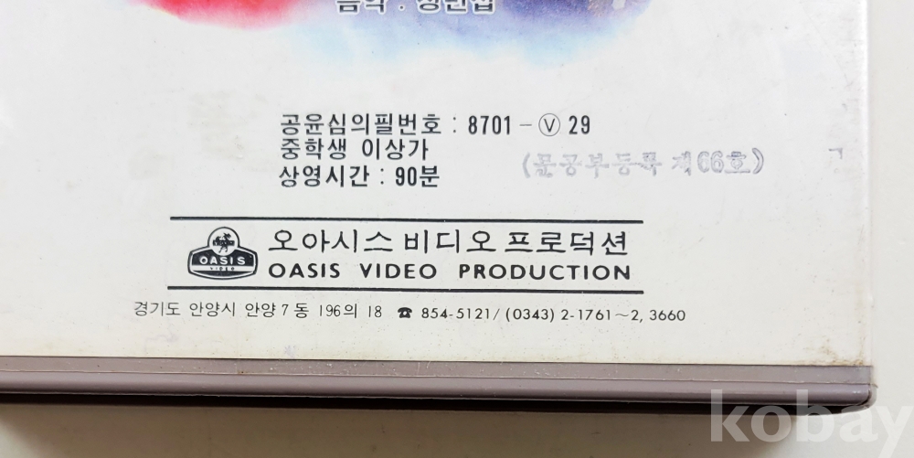 상 태 | 재생여부 확인 불가 및 재생상태 확인 안함. 간혹 보이는 비디오테이프에 발생한 곰팡이들은 세월의 흔적으로 필요하시면 관련업체에 의뢰하시어 세척을 하셔야 합니다. 단, 흰색곰팡이는 리와인드로 한번 돌려주면 제거가 가능하나 검정색곰팡이는 세척을 하여도 화면재생이 안됩니다. 그래서 각각의 비디오테이프의 오염상태를 사진으로 올리오니 보시고 참고하여 주시고 상태가 안좋은 것은 화질의 질을 떠나 비디오테이프 그 자체의 존재에 소장 의미를 부여하시는 분들만 입찰하여 주시길 권유합니다. 부득이 반품신청시 사전에 판매자에게 미리 연락주시기 바랍니다. 비디오테이프는 재생하는 기계의 상태에 따라 화질이 다를 수 있는 등 분쟁의 소지가 많은 품목입니다. 사전 연락없이 반품신청시에는 입찰제한자로 등록하겠습니다. 훼손 및 오염 정도(강,중,약,양호로 표시합니다.) - 케이스 & 삽지 : 약~중 / 라벨 : 약~중 / 테이프 : 양호 / 곰팡이 : 양호 |