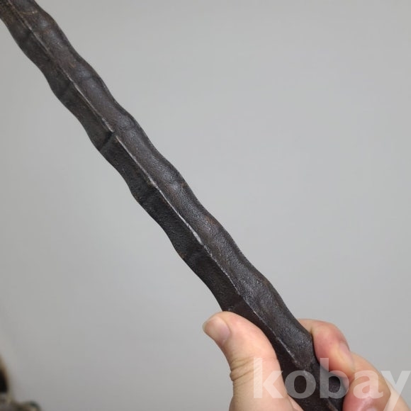 무쇠로 만들어진 병장기 혹은 무쇠 철퇴입니다 속이 꽉찬 무쇠에 용문쓰바가 인상적이고 요철이 나있는 무기입니다 그 무게만 해도 5~6킬로에 달하는 골동품입니다. 마지 삼국시대나 춘추전국시대로 회기시키듯 땟물과 세월의 연식이 한껏 느꺼집니다.