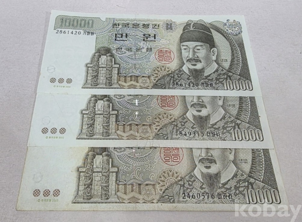 -대한민국 5차 만원 준미 1장, 극미+ 1장, 사용제 1장 일괄 3장 입니다.