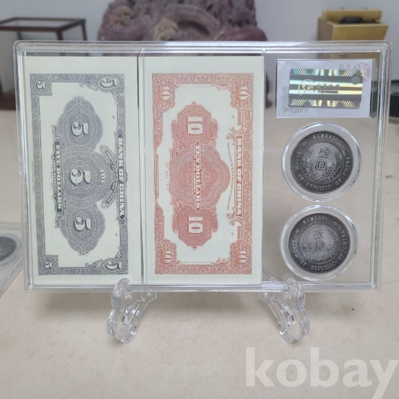 주화와 지폐가 프루프 형태로 담긴 기물입니다 감정받지 않은 소장품입니다