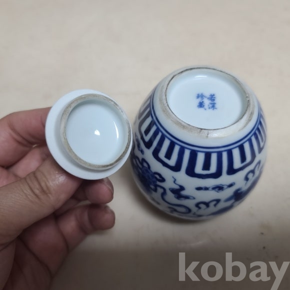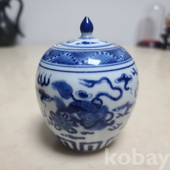 청화기법으로 제작된 명품 도자기 차통입니다. 직접 붓으로 그린 그림에 미사용 작품 입니다