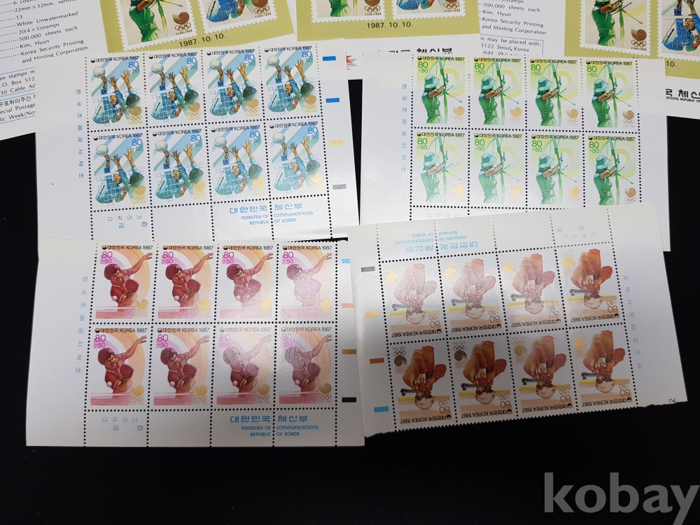 - 1987년 88서울올림픽 기념우표 반전지, 안내카드, 명판 등 모음