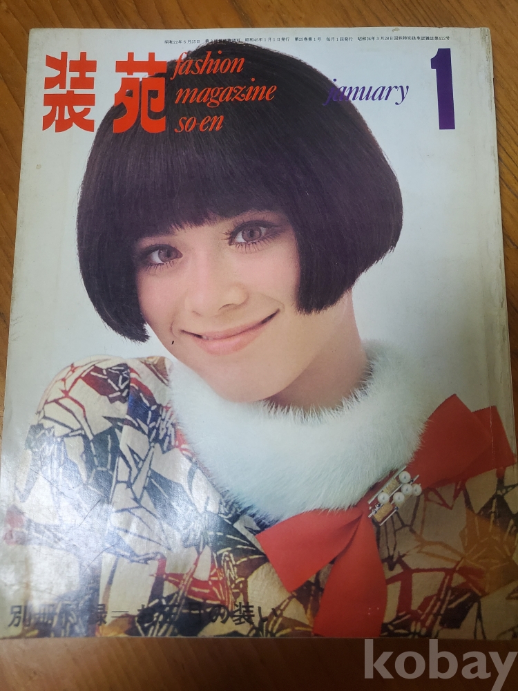 1. 장원(裝苑, SOEN) 제25권 제1호, 문화복장학원출판국, 1970년, 260쪽, 일본판, 표지모델 티나 라츠, 상태 상, 사진 참조