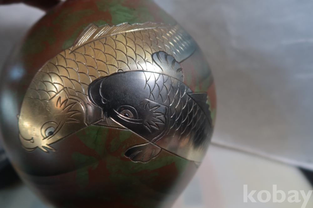 공예가의 혼을 가진 당대의 명품 임니다 금 은 잉어 조각된 명물 임니다 우아함과 역동감을 가진 무개감을 가진 명품 임니다