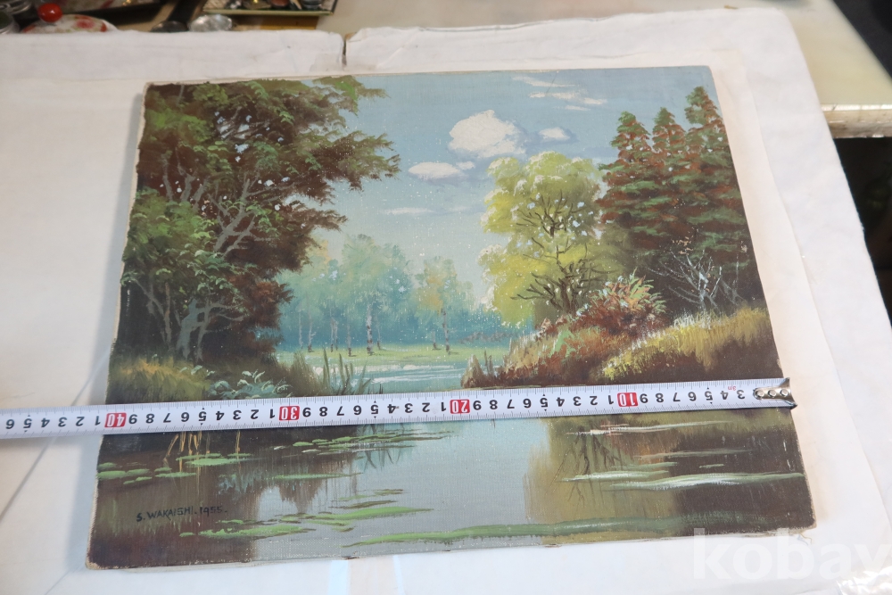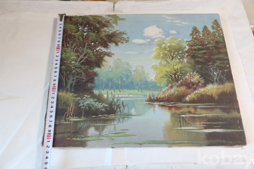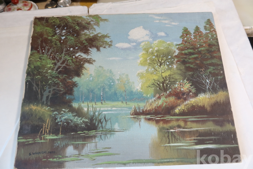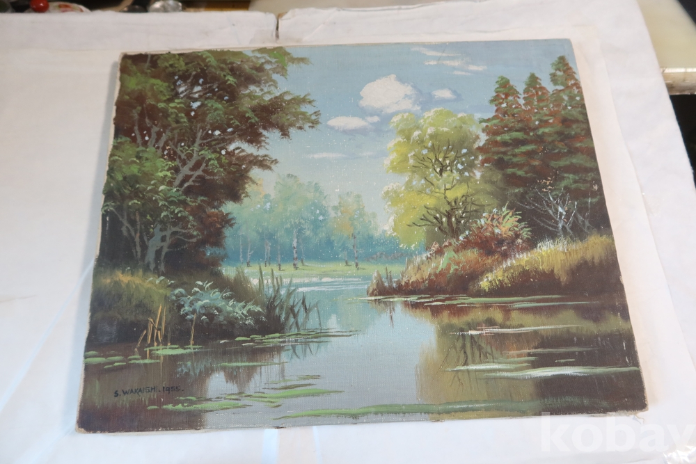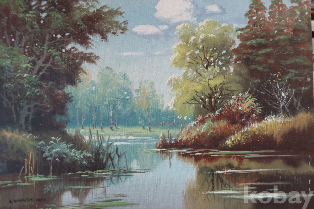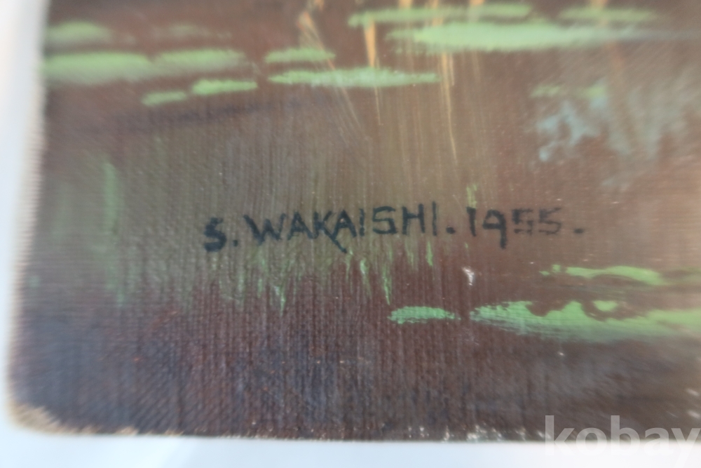 For a Listed Artist, remarkably little is known about Shigeo Wakaishi (1917- ). He's supposed to have had training at the Nihon Geijutsu-in (Japan Art Academy) or one of its Imperial predecessors. His earliest dated work is from 1948 and the latest dated one was in 1968. Framing tags indicate he may have been based on the island of Kyushu during the '50s but another indicates some sort of connection to Chicago's Marshall Field department store. In any event, he seems to have been a fairly prolific painte |