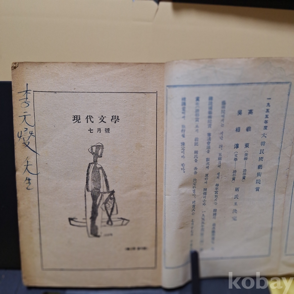 현대문학 1956년7월(제2권 7호=통권 19호)잡지-표지:변종하,차례화:문학진 外, 육/2
