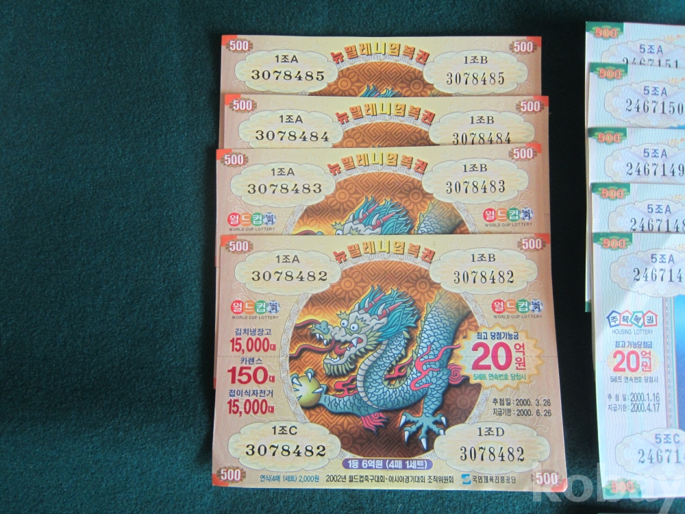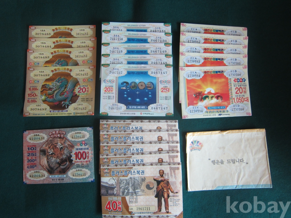2001년슈퍼코리아자치복권(1매) ,2002년플러스플러스복권(5매)총20매 등