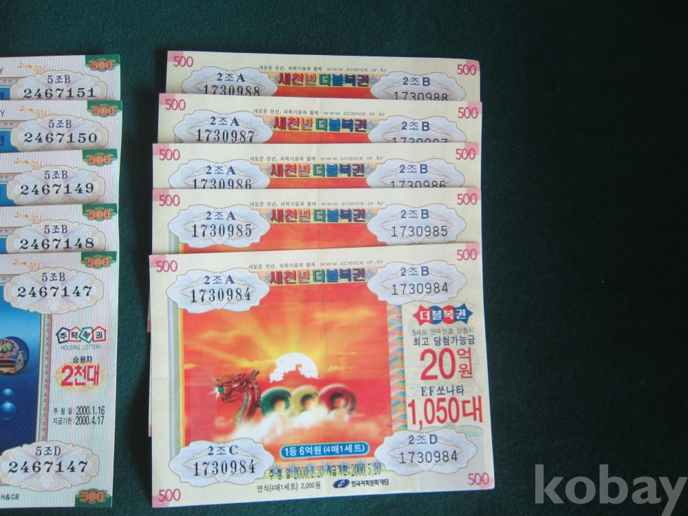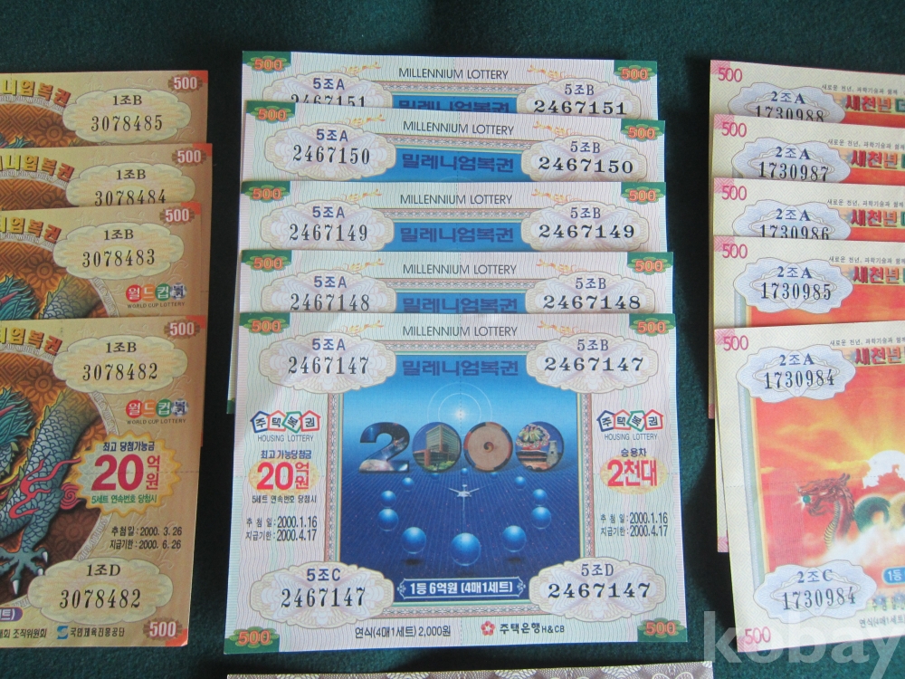 .특년도 2000년기념 밀레니엄 주택복권(5매),새천년더불복권(5매), 뉴밀레니엄복권(4매)
