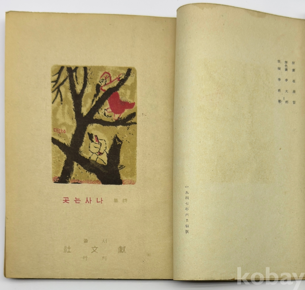 설 명 | 오장환의 제3시집이다. 권두시 「승리의 날」을 포함하여 「밤의 노래」, 「붉은 산」, 「나 사는 곳」, 「푸른 열매」, 「은시계」, 「고향 앞에서」 등 총 24편의 시가 수록되어 있다. 권두에 저자의 후기가 있다. 장정은 이수형, 판화는 최은석이 그렸으며, 속표지의 원색화는 이대향(이중섭)이 맡았다. | |||||