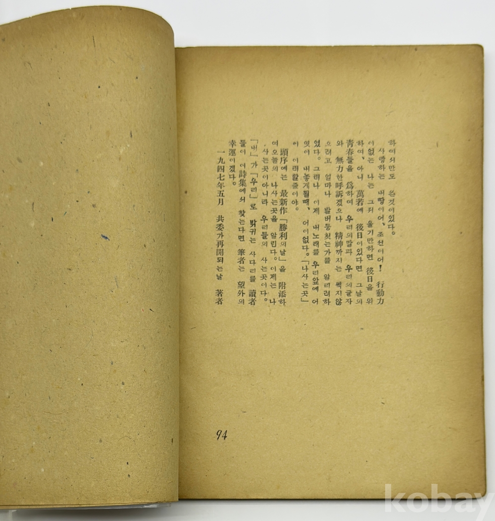 물 품 명 | <취향지가> [79] 1947년 월북시인 오장환의 제3시집 [나사는곳] 초판본 1책 | |||||