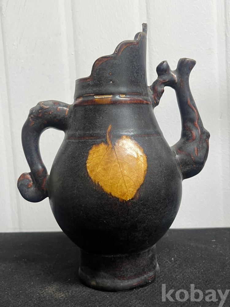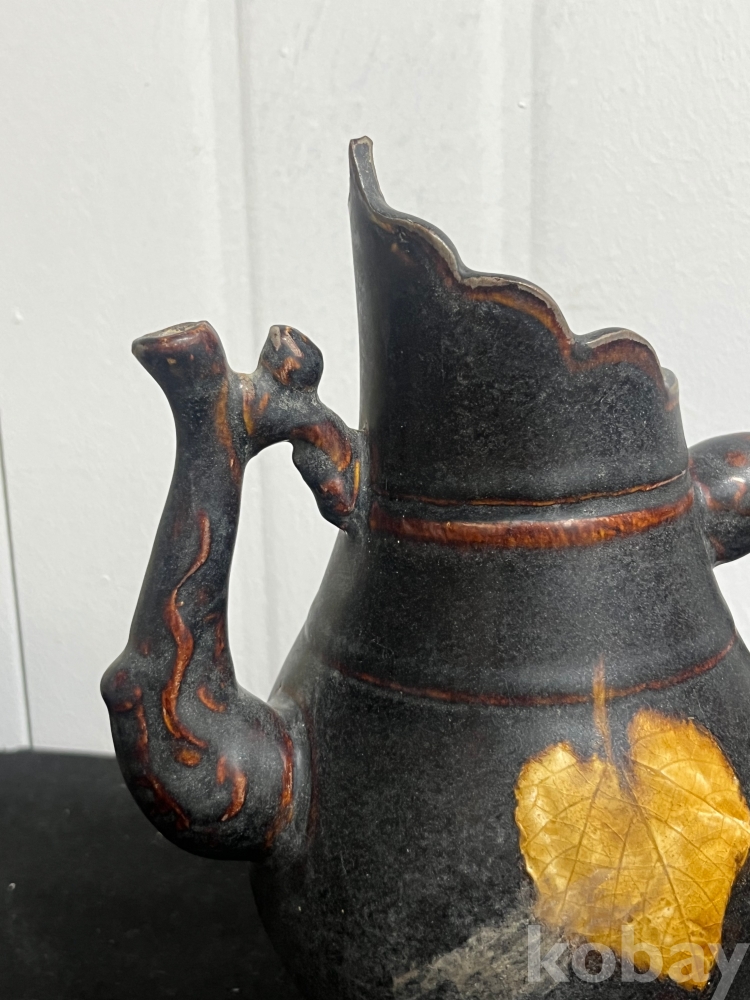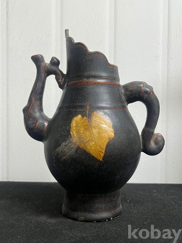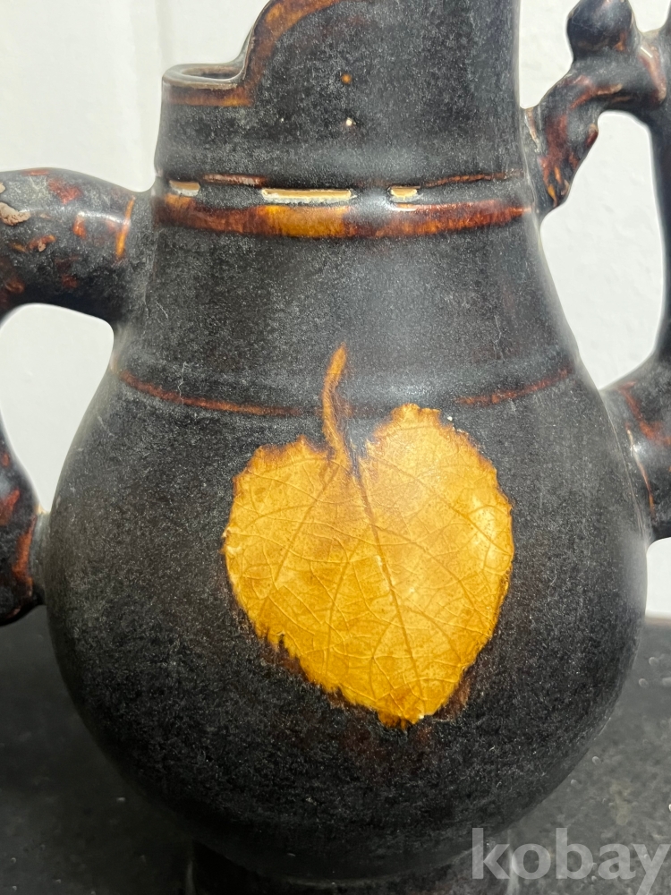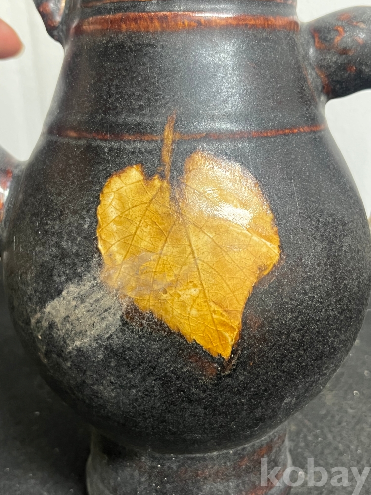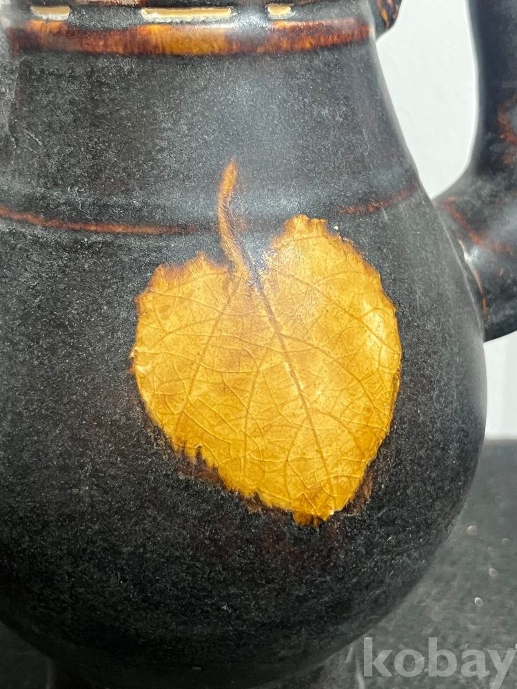 짙은 흑유 위에 실제 나뭇잎을 붙여 소성하는 목엽기법을 통해 잎맥까지 선명하게 드러나 있습니다.