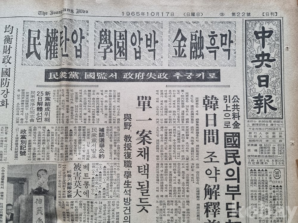 go-5 / "1965년 10월, 격동의 서울: 중앙일보 정기 간행본 기록" (광고, 만화, 유명 영화 관고, 이슈 등)
