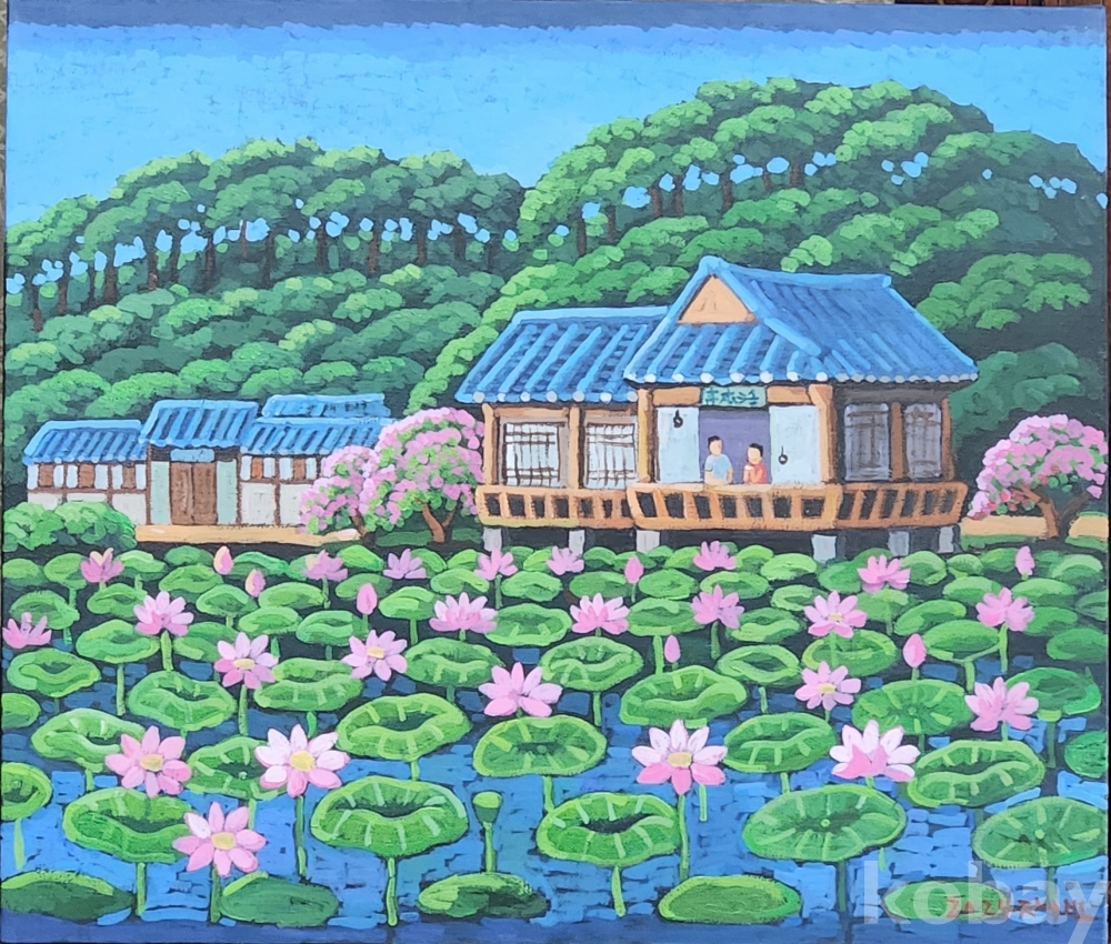 설종보 화백의 활래정 연꽃 켄퍼스아크릴 10호 작품 입니다