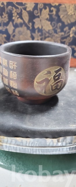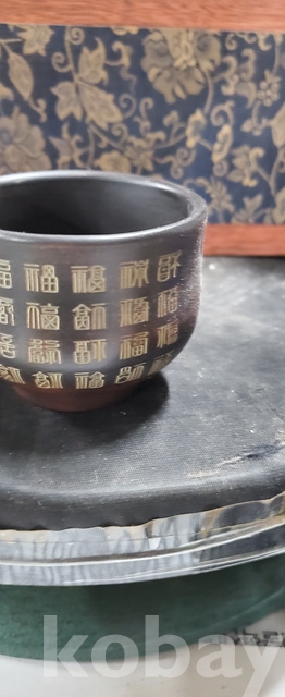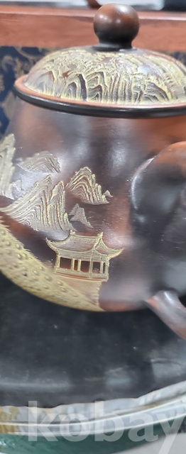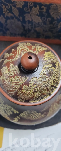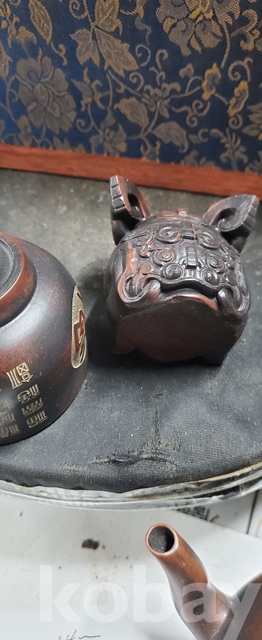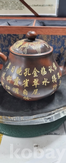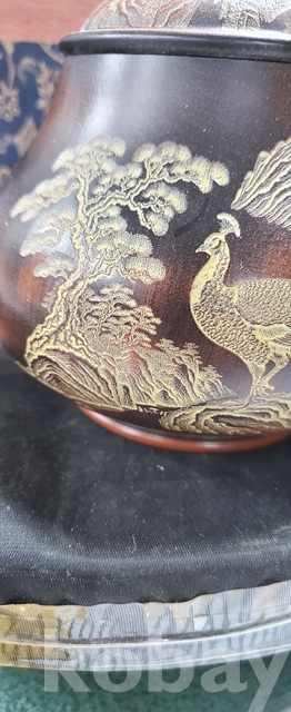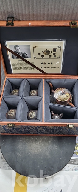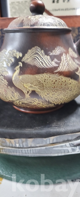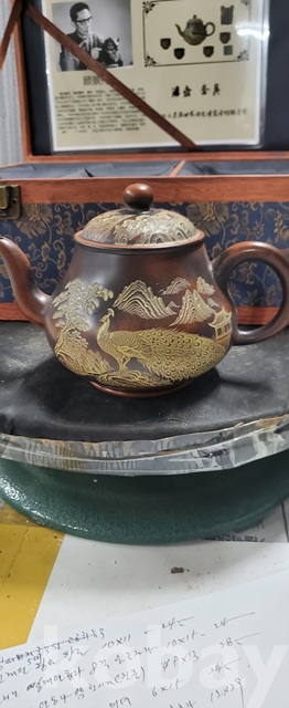 g-7.고급박스에담긴 금칠된중국유명도예가고경주의 공작문양 자사찻셋트(미감정)