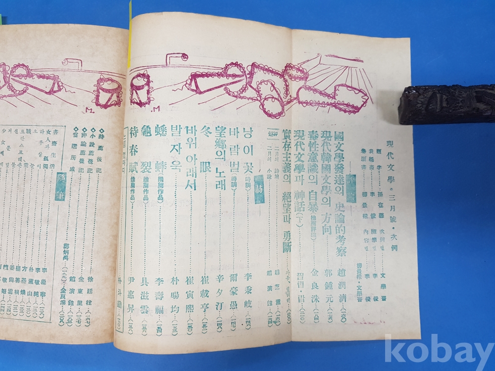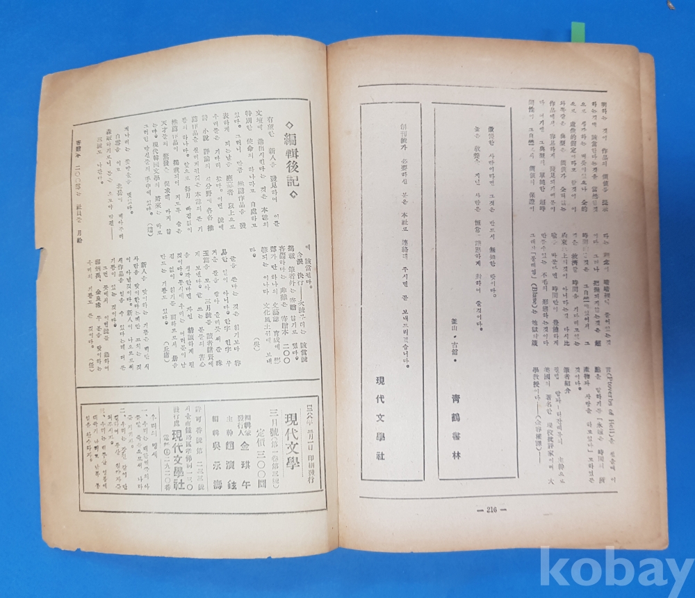 ▶朴斗鎭의 글 “느낌 몇마디”가 실린 現代文學 1955년 3월호, 월간 현대문학,216쪽