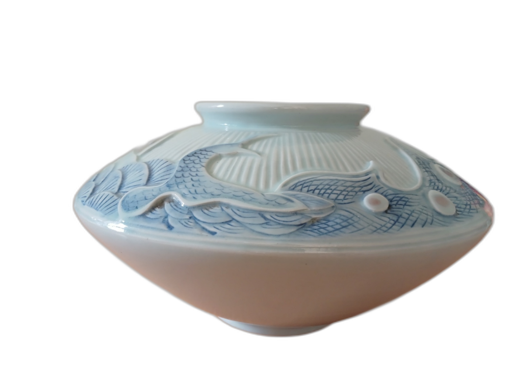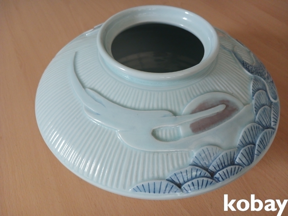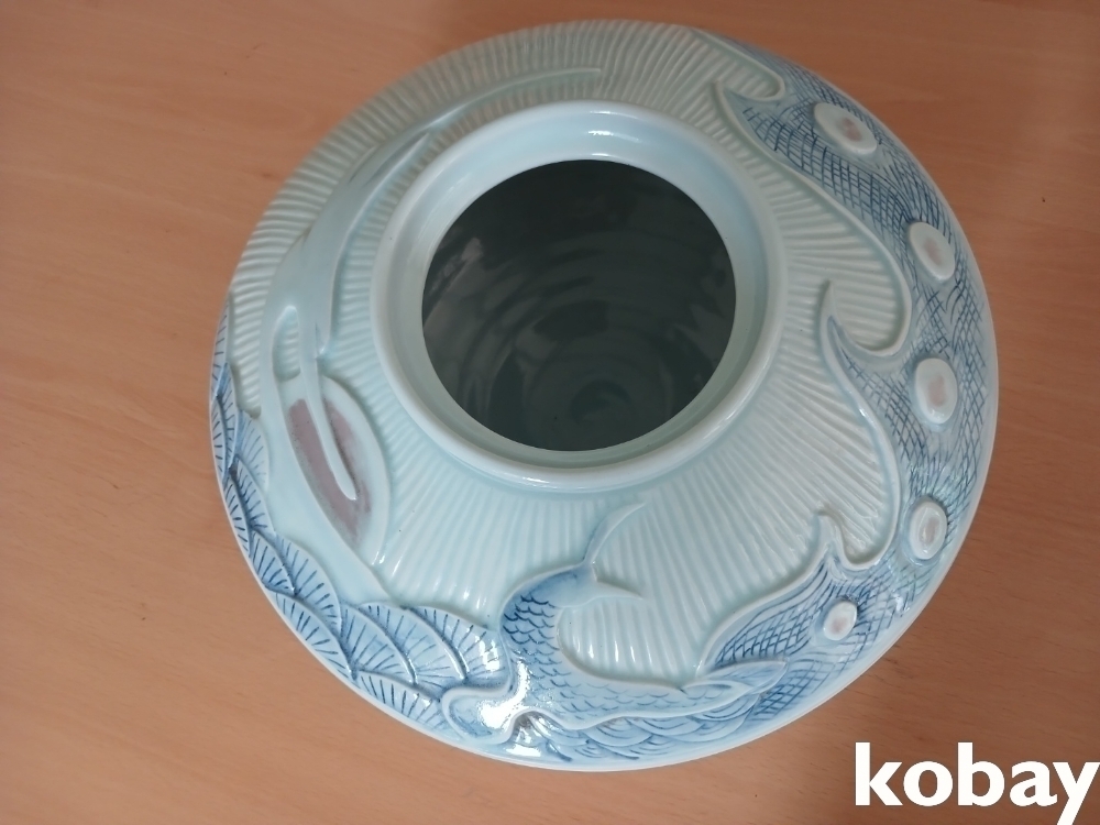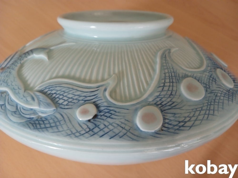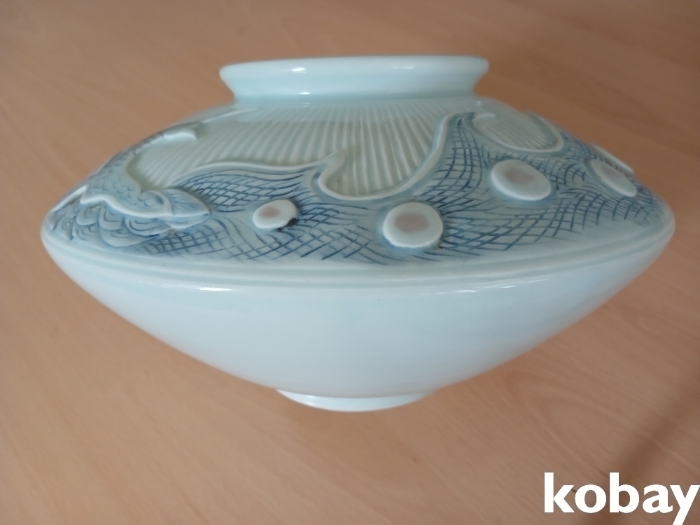 물결 모양이 입체감 있게 표현된 바둑알 도자기 입니다.