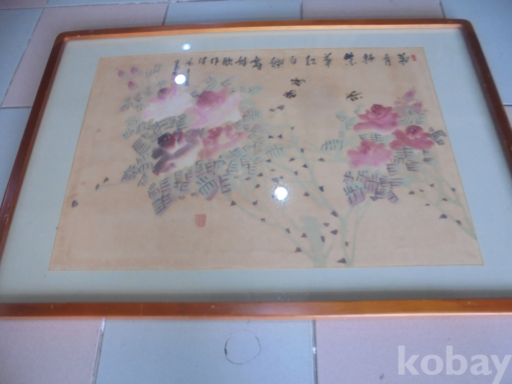 그림이 오래되여 그림과 종이가 색이바랜것이 깊이가있고 그림이호연지로 화가 연구대상인 오래된 장미와가시 호박벌의 깊은그림 액자