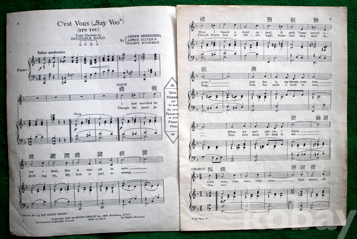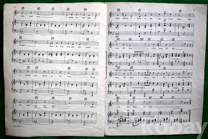 (오래된 피아노 악보) C'est Vous (It's you) - 1927년. 미국발행...