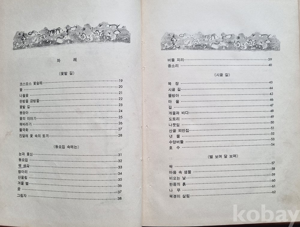 구성과 테마: '꽃밭 길', '시골 길', '별 보며 달 보며' 등 서정적인 테마로 나뉘어 당시의 순수한 동심을 잘 보여줍니다.