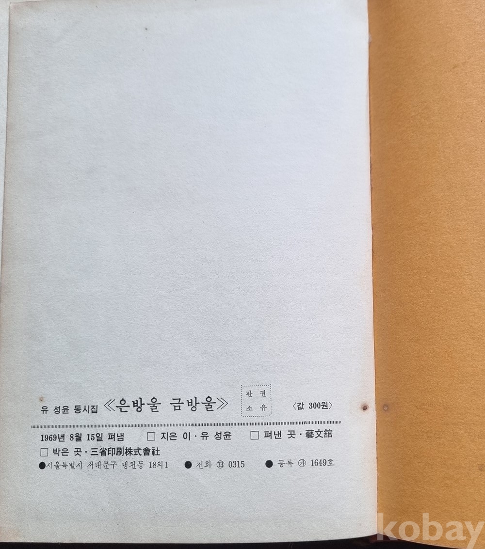 당시 판매 가격(300원)과 발행처(예문관)가 기재된 귀한 초판본입니다.