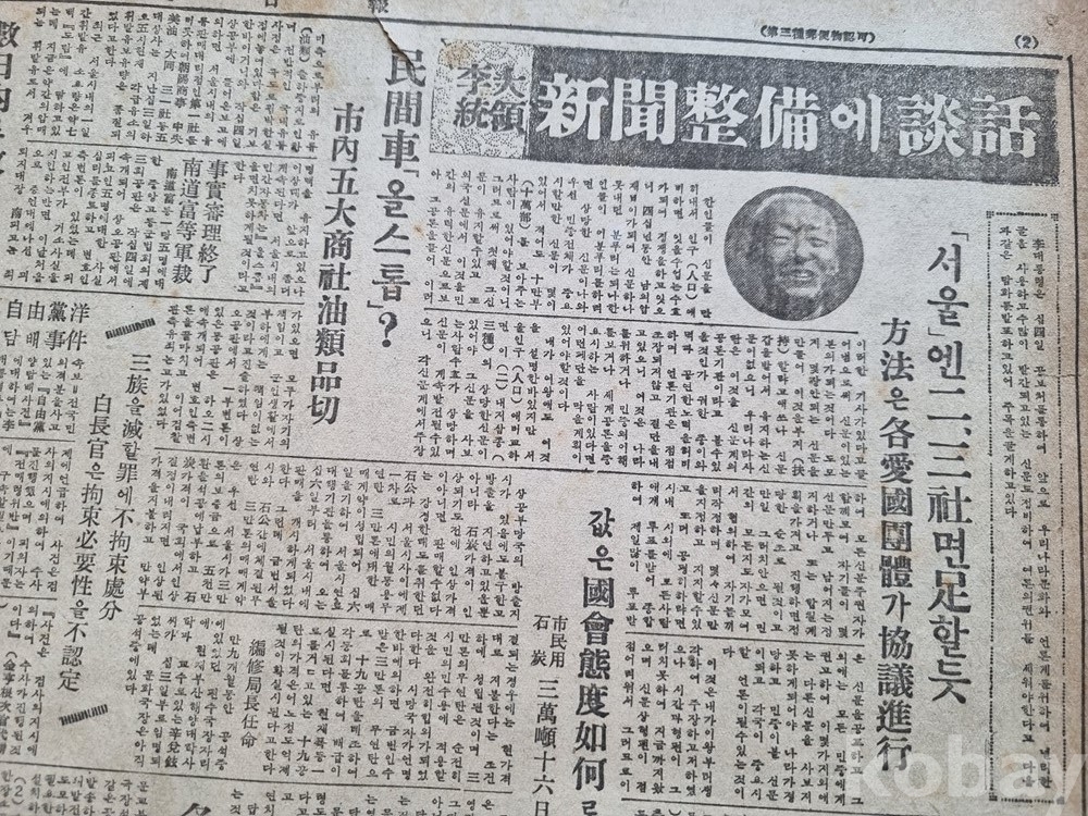 "李大統領 新聞整備에 談話(이 대통령 신문 정비에 담화)",