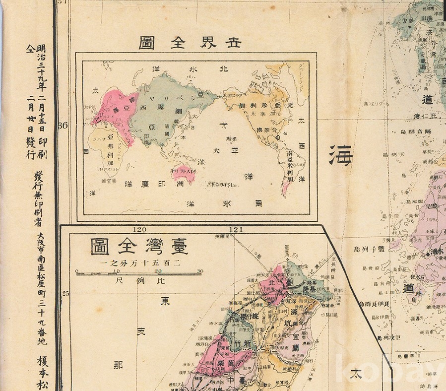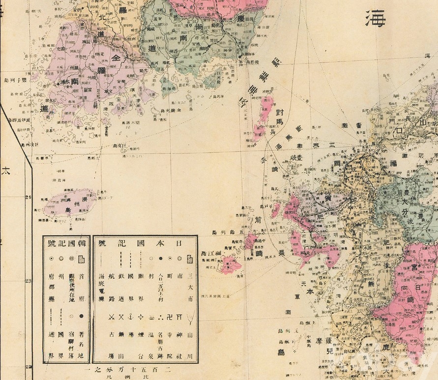 빠른 시긴인 1906년에 제작되고 파로도 채색 구분과 울릉도 표기